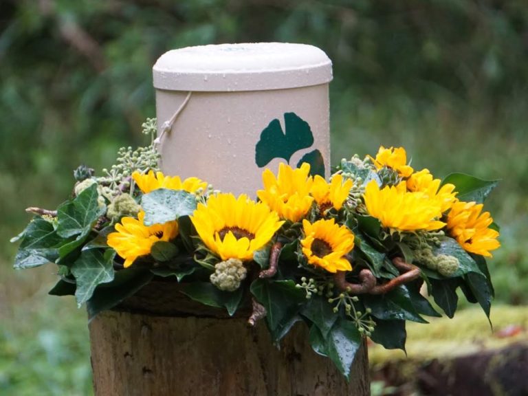 Die Trauerfeier kann religiöse Elemente wie die Grabsegnung oder das Vater Unser enthalten -